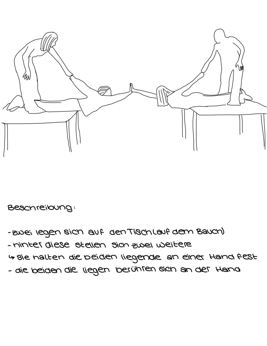 Im Kunst-Projekt „Werde zur Skulptur“ haben die SchülerInnen eigene ungewöhnliche Handlungsanweisungen für eine „One minute-sculpture“ zum Thema „Hände reichen – Brücken bauen“ im Sinne Erwin Wurms entwickelt. Die Handlung sollte zu zweit oder mit mehreren Personen ausgeführt werden können.